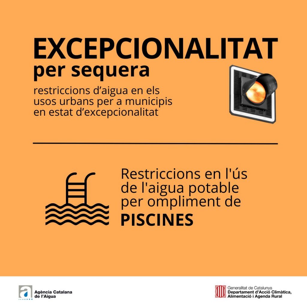 D’acord amb la comunicació de l’ACA queda prohibit l’ompliment de piscines.