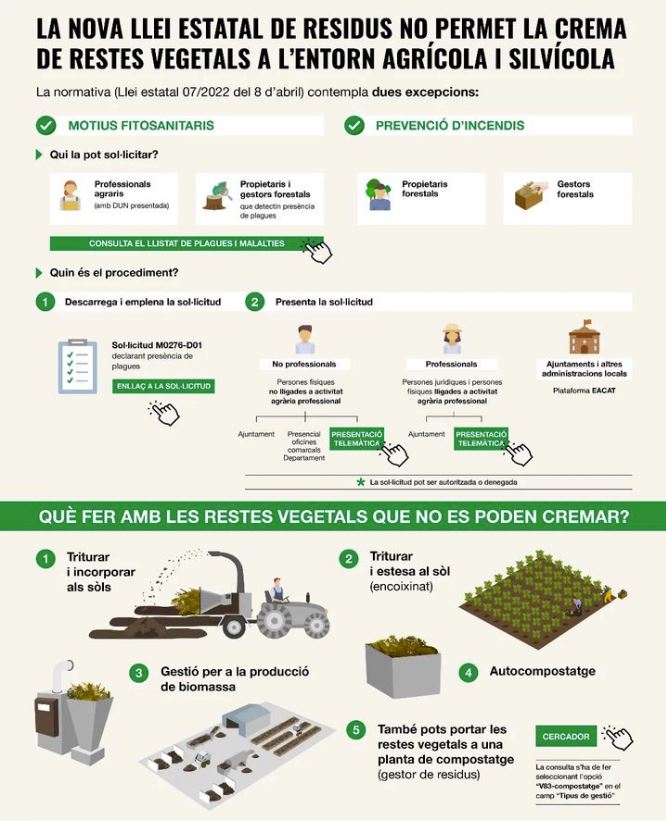 La nova llei estatal de residus no permet la crema de restes vegetals a l’entorn agrícola i silvícola. 🚫🔥