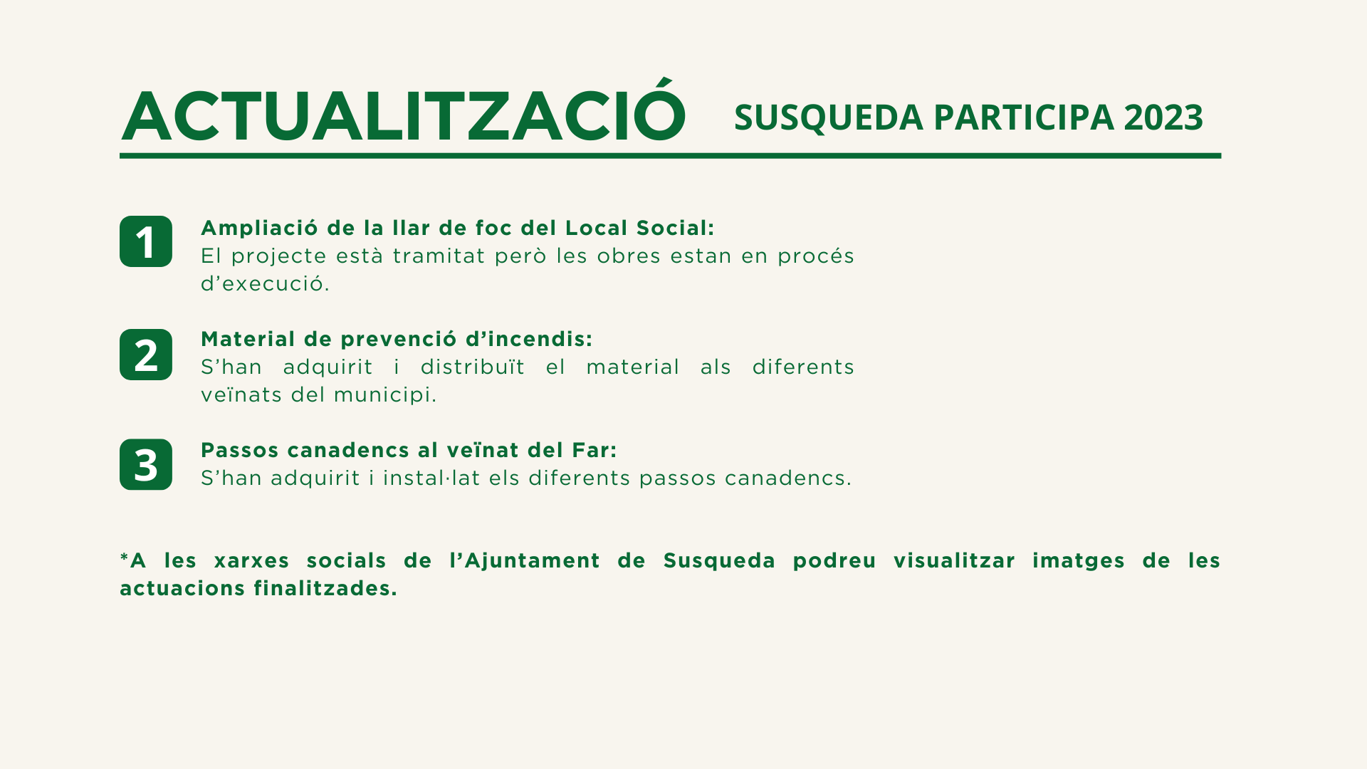 - ✅ Propostes vàlides que van passar directament a la fase final de votació: són aquelles propostes que van complir amb totes les normes i requisits del procés. Consulta-les aquí.
