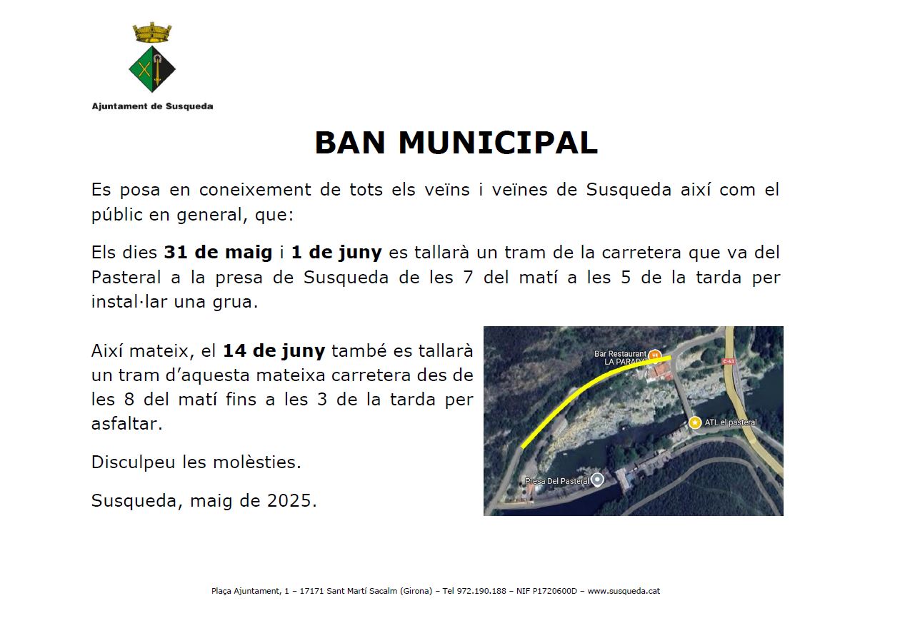 Actualitat, Agenda, General, Notícies Tall carretera Pasteral – Presa de Susqueda 27/05/2025 < Entrada AnteriorEntrada Posterior >
